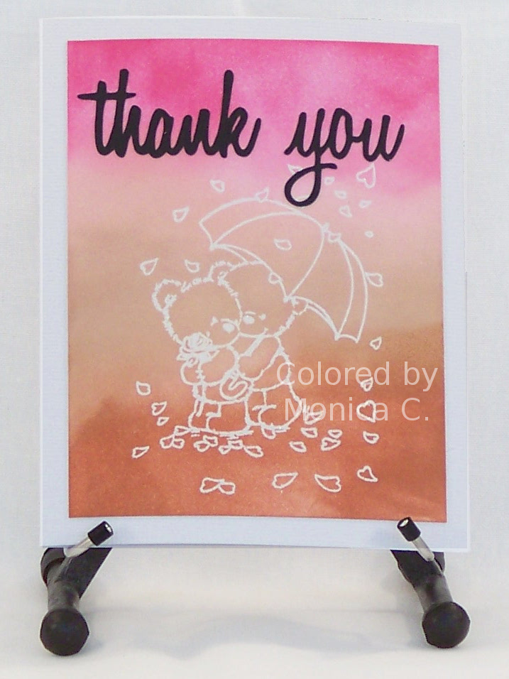 I stamped the image with Versamark ink and then embossed it with clear sparkly embossing power. Then applied four colors of ink with sponge daubers from top to bottom. The magical way in which the image appeared was amazing.