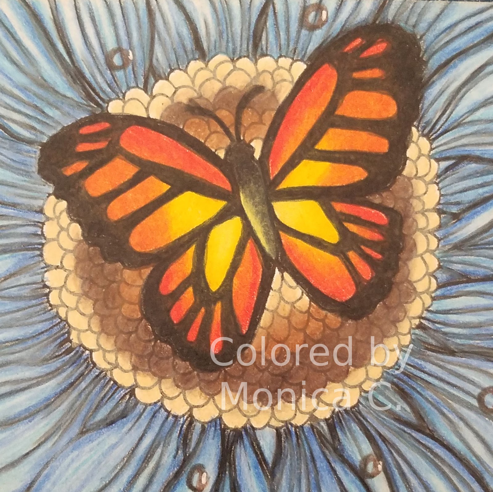 This made the vibrant butterfly stand out nicely on the blue flower.