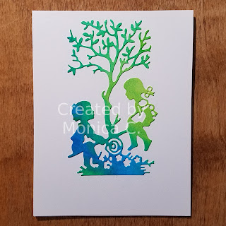 And my final card is extremely simple. I die cut the children on the see-saw out of the watercolor paper and applied it to the front of a card as the only focal point. I love this card for its clean and simple look.