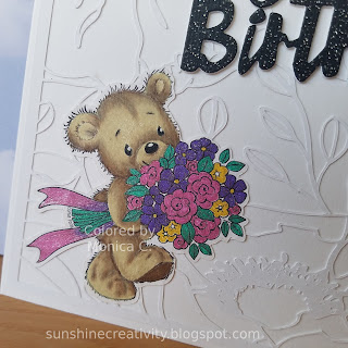 Wat een prachtige kaart. Schattige beer en prachtig ingekleurd. Mooie achtergrond ook.