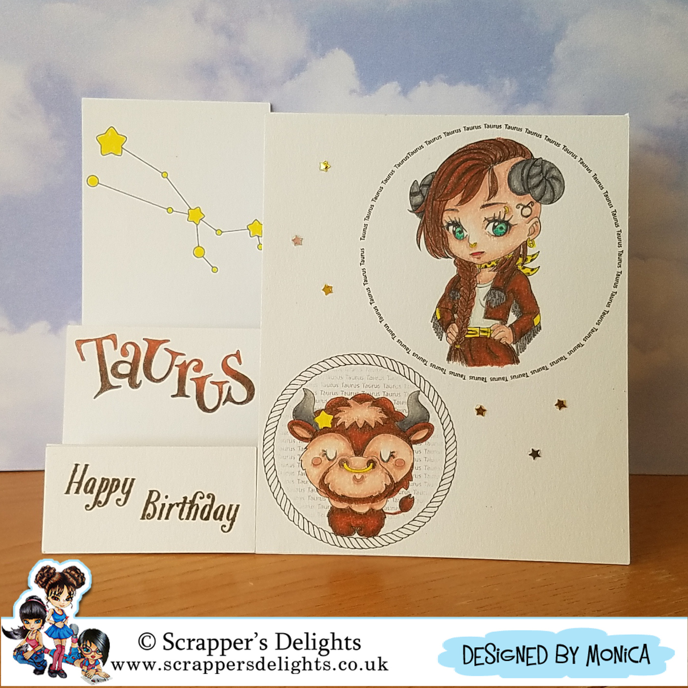 Scrappers Delights. As was the case last month, if you get all three new images from the release, you will get the star sign bundle for free. This bundle has 3 images and a number of elements all revolving around the Taurus sign.