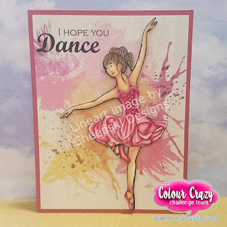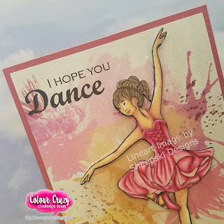 Your little dancer is gorgeous, Monica. The colouring is fabulous, especially the folds in her dress! Beautifully designed card! x