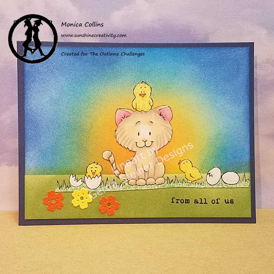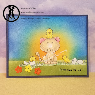Hi, Monica! this is DARLING with the sunshiny kitty and all her friends surrounding her dear warmth. Your colors are wonderful, and such a sweet card! hugs, de