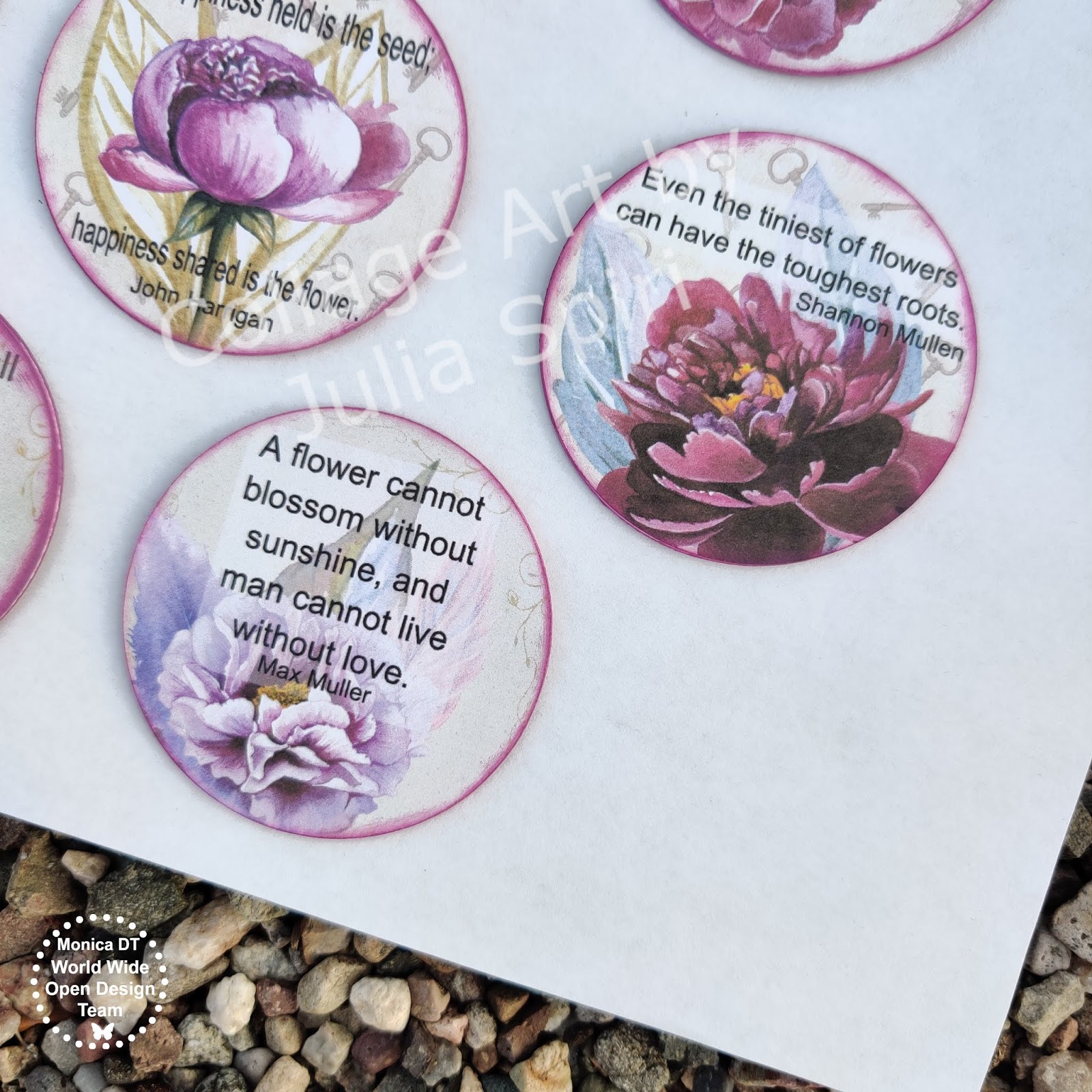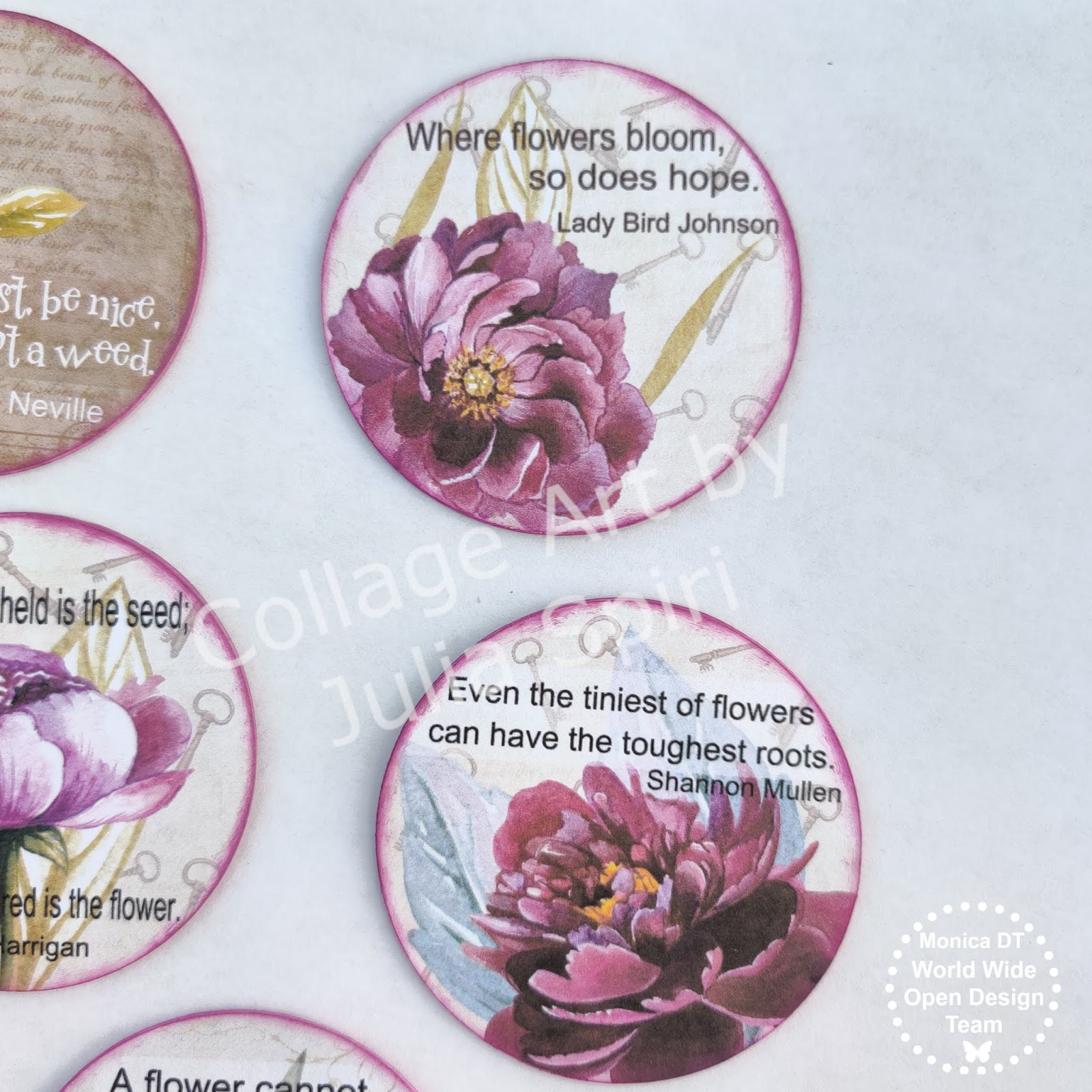 Wow Monica what a beautiful collection of ATC coins. I love that you share all the steps for making them also. Those flowers and sentiments are just brilliant. Xx Aileen