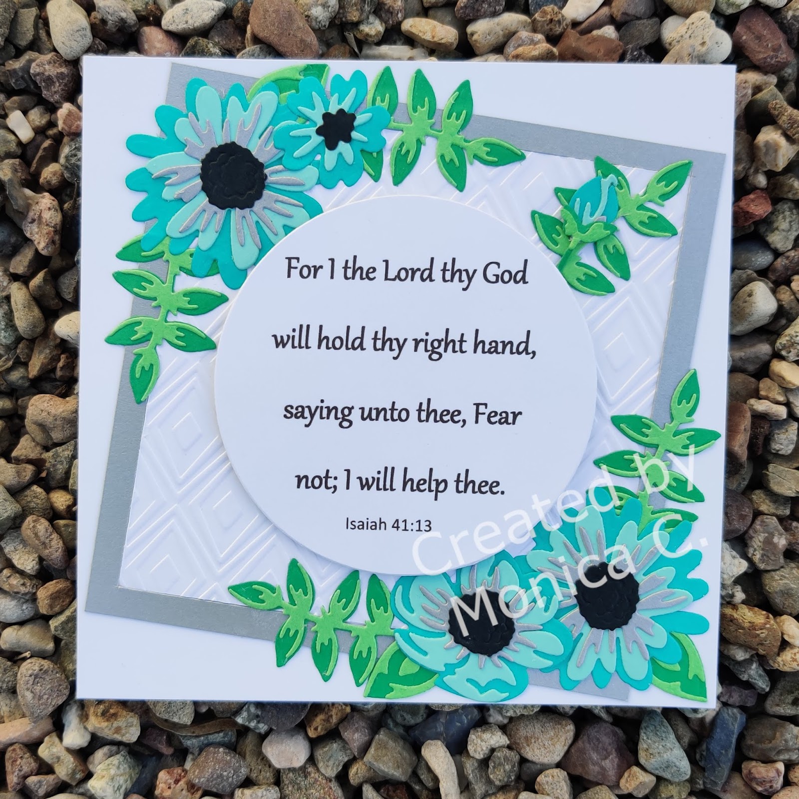 A beautiful encouraging card and scripture. LOve all the die-cut flowers and embossing