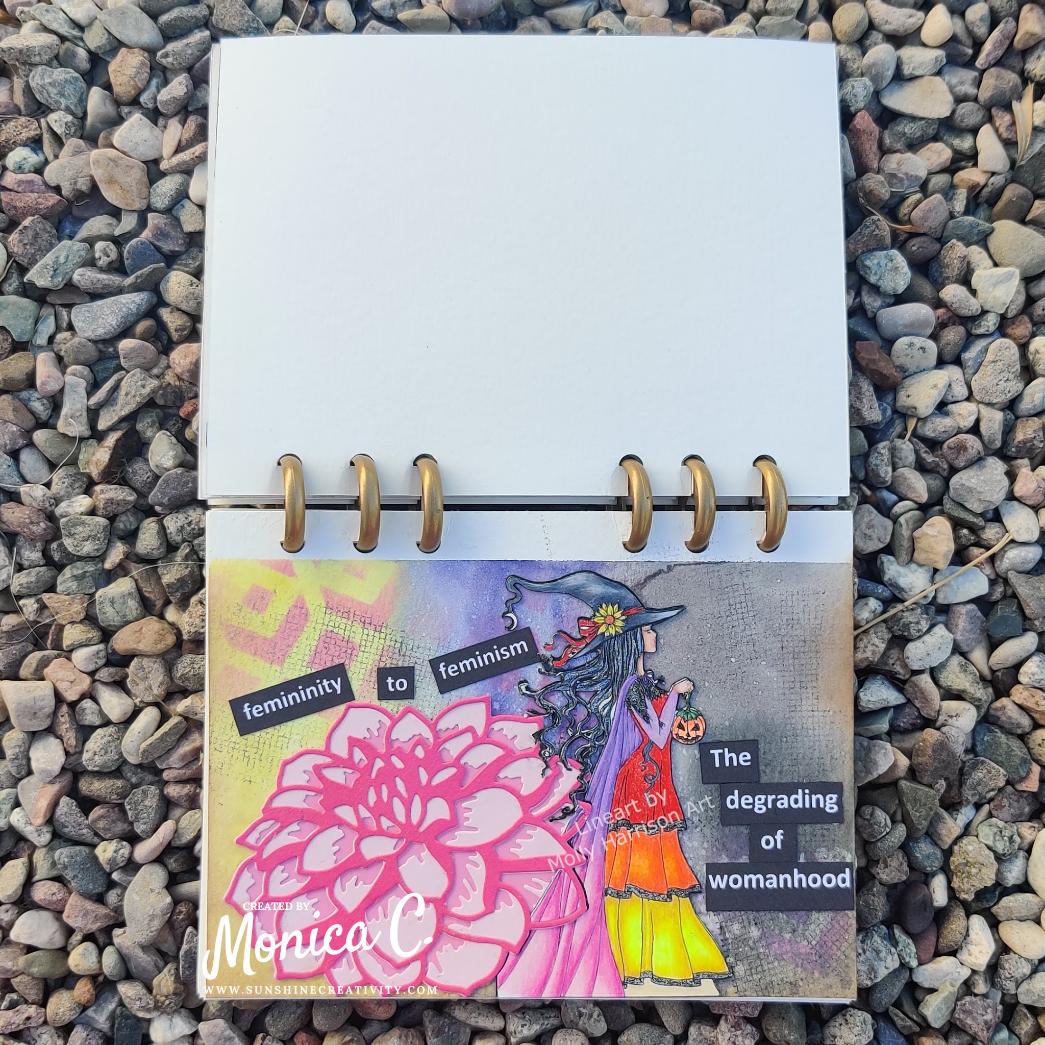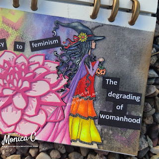 Monica, your journal is wonderful. I was wondering what you would create and you surprised me so positively! Every woman is part witch, life itself is magic, and we create family life and more, so we have to be witches 🙂 This site is amazing. I love how the veil of her hat blends with the dahlia. I wish I knew English because you would have a student to learn to use all the devices you use. I am enchanted by your work for our challenge. Your coloring is stunning as always