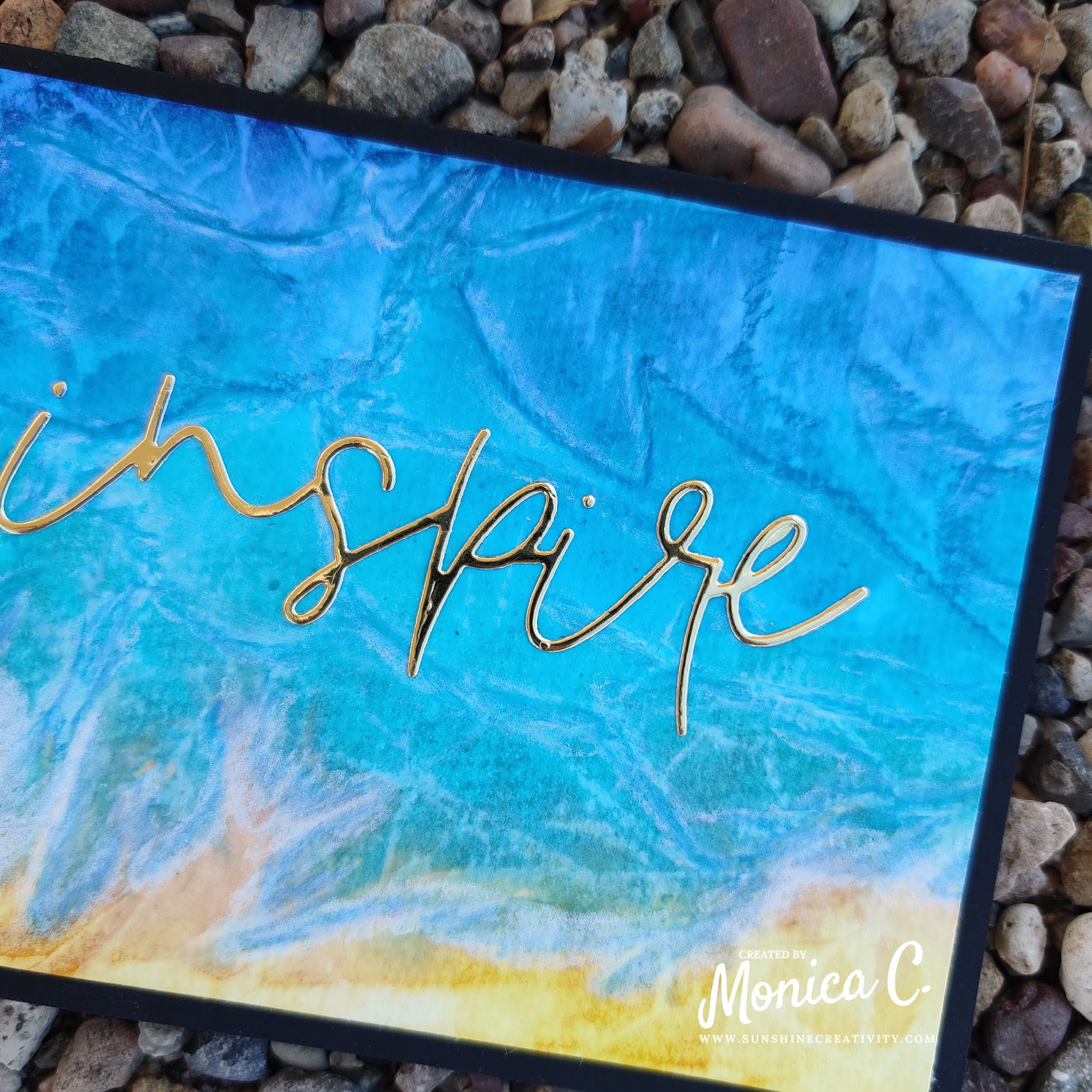 I think you should go for watercolors more often, loose paint and foil can paint such amazing scenes and your seaside scene is speechless. I love this card and please don't put this technique aside, because it's the idea and technique that create the masterpieces. A wonderful, unique card.
