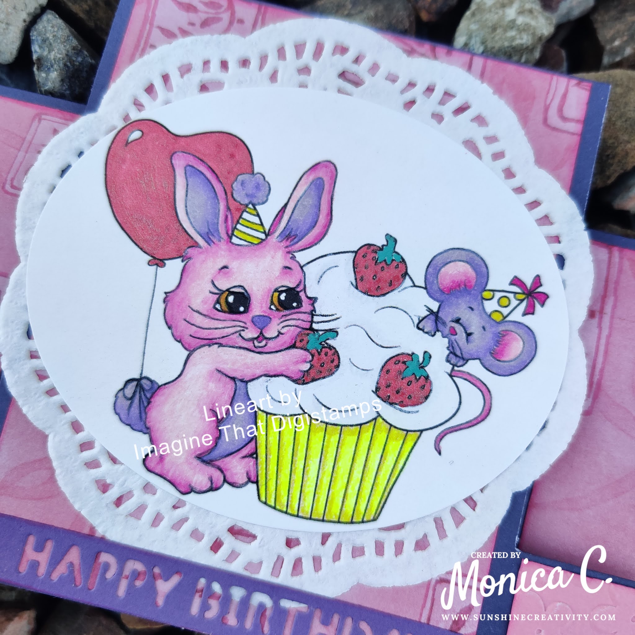 Well aren't you the clever one, Miss Monica? so many DAH-LING elements in a single creation! This spring time birthday card is beyond beautiful. LOVING the pink and purple critters, and the feeling that happiness is a unicorn colored life. SO SO SO CUTE! There is something about the great expanse of the desert that calls my soul. It's certainly different than the lushness of Florida, which whence you came – LOL – but I do love the vast openness. It makes me feel one with Eternity. I especially love the seasonal colors of the desert, and the sunrises and sunsets. As a child, I arose early enough to watch the sun rise – it is LIMITLESS AND VAST. So happy for you and your new permanent place! hugs, de