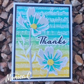 All of your Cosmos cards are beautiful Monica!! I LOVE all the colour combinations. Adore the embossed and blended background, and the gold embossed heart is beautiful. Thanks for sharing with us at The Flower Challenge!